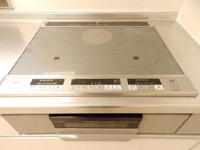 バストイレ別、エアコン、室内洗濯機置場、収納、WIクローゼット、洋室、システムキッチン、TVインターフォン、シャンプードレッサー、ウォシュレットトイレ、浴室換気乾燥機、追焚バス、カードキー、インターネット対応、BS、全室照明器具、ペアガラス、床下収納、バルコニー、角部屋、二階以上、最上階、駐車場、駐輪場、トランクルーム、宅配ボックス、IHヒーター |